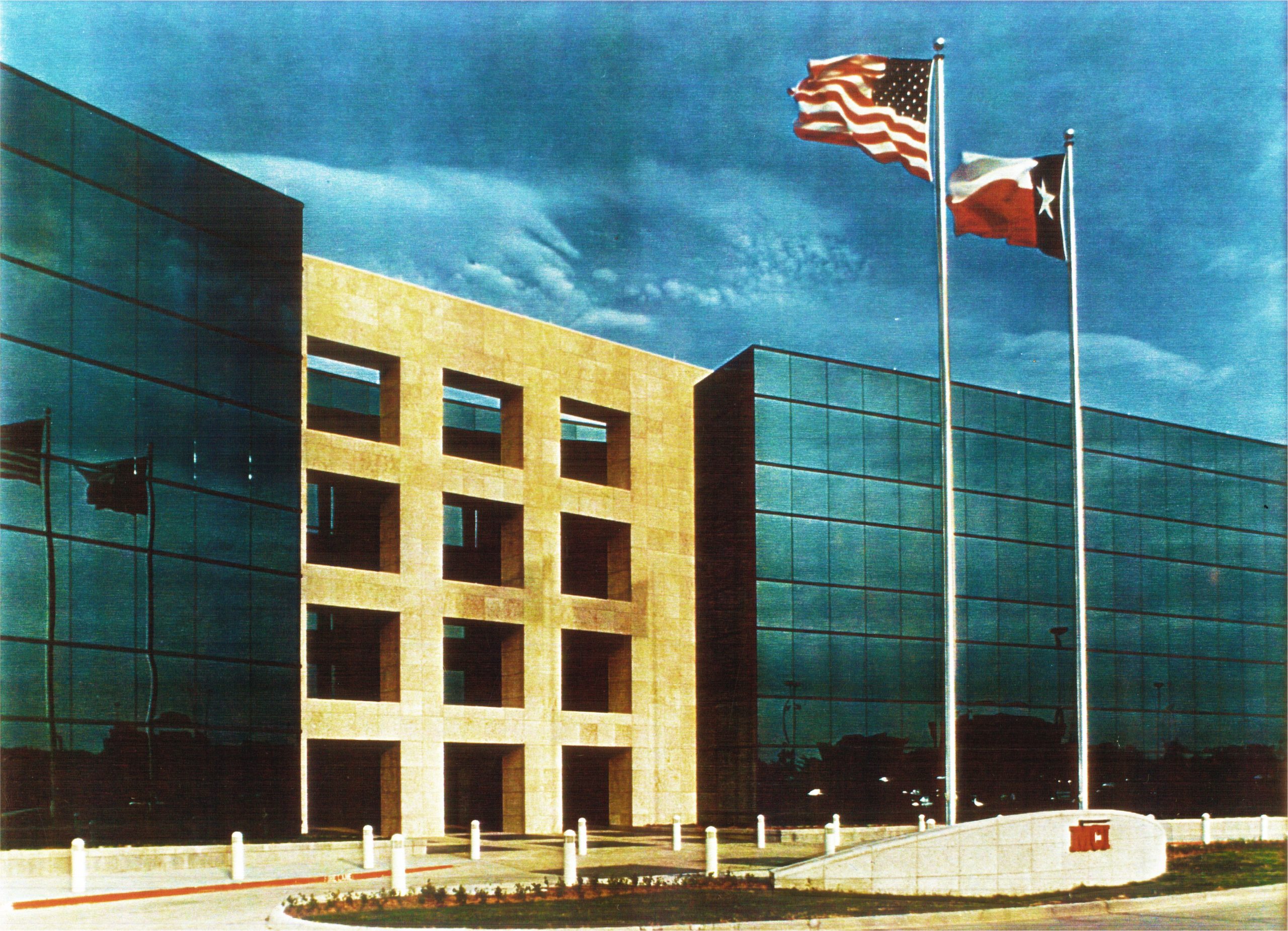 Clad in several colors of brick, cast-stone detailing, glass block, and ornamental grillwork. Public areas are denoted by cylindrical forms, and open covered walkways which are so important in the Texas climate for the exterior public plaza ...